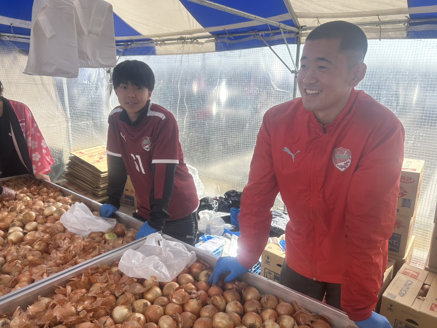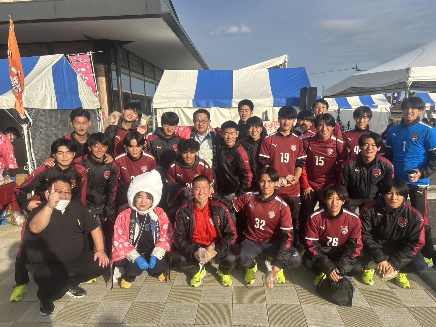 11月8日(土)JAまつりinあぐりあに男子サッカー部の選手たちがボランティア活動の一環として、販売のサポートを行いました。ボランティア活動を通じて、食の大切さや地元の方々とコミュニケーションを取ることができた素晴らしい機会となりました。主催である福島さくら農業協同組合の皆様、誠にありがとうございました。